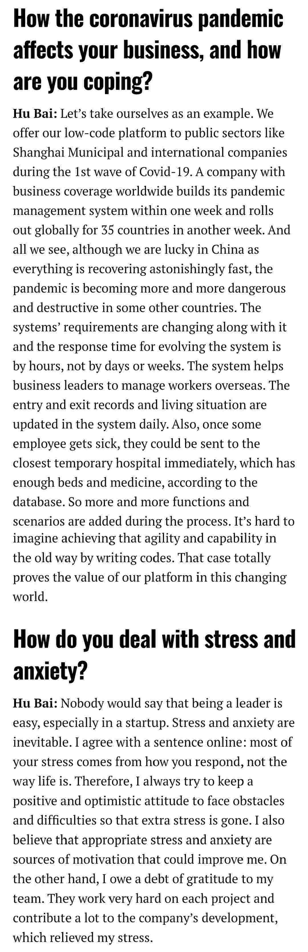 2021年年初,,,,爱湃斯科技CEO胡柏受邀接受法媒Startup.info的专访,,,与Startup info的读者分享了自己的创业经历、、以及低代码平台小米钱包的创新之处。。。。